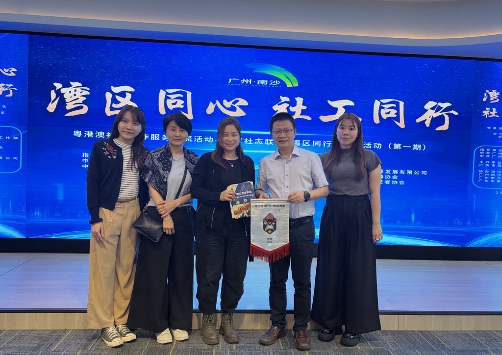 “灣區同心,社工同行”粵港澳社會工作服務交流活動 主頁 最新消息 服務處轄下聖公會樂天倫賭博輔導暨健康家庭服務中心,於2026年於4月15日,受邀出席在廣東省南沙舉行,由中共廣州市委社會工作部、中共廣州市南沙區委社會工作部指導,廣州市南沙區社會工作協會主辦的 “灣區同心,社工同行”粵港澳社會工作服務交流活動,聚焦“專業社工+志願服務”融合發展路徑,通過主題分享、結對共建等形式,推動三地經驗互鑒、資源互通,共同探索基層社會治理新實踐。